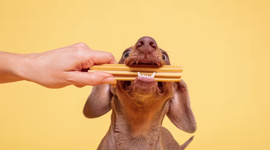 Another convenient way to clean your dog’s teeth is a daily dental stick for dogs . As your pooch spends time chewing on the stick, they are simultaneously releasing ingredients for cleanliness and fresh breath (such as mint and spirulina ) while scrubbing plaque and tartar from the surface of their teeth.